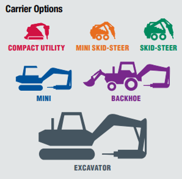 Permite ser instalados fácilmente en miniexcavadoras, minicargadoras y retroexcavadoras con neumáticos.
